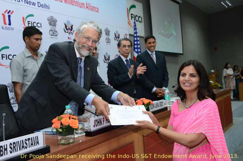 Dr. Pooja Sandeepan, Jaipur. Dr Pooja Sandeepan received "indo-US Science and Technology Endowment Award" June 24, 2013.