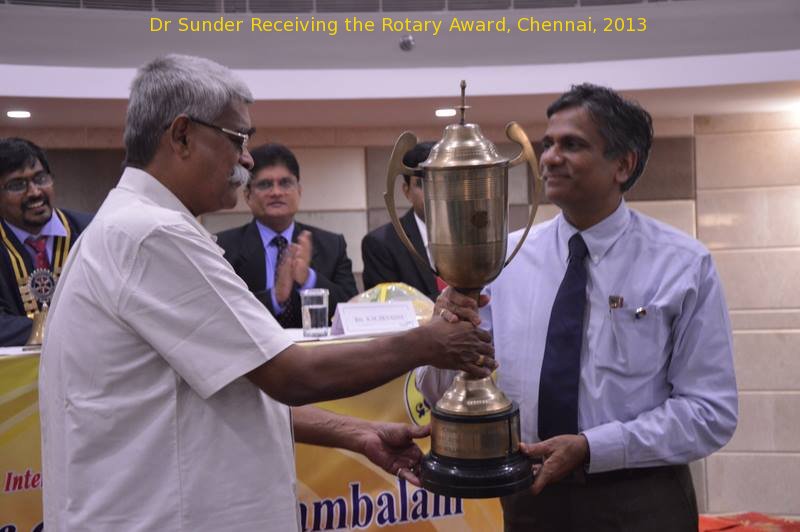 Dr. Sunder, Chennai. Dr S Sunder, Chennai, Receiving the Best Rotarian Award for the year 2013.