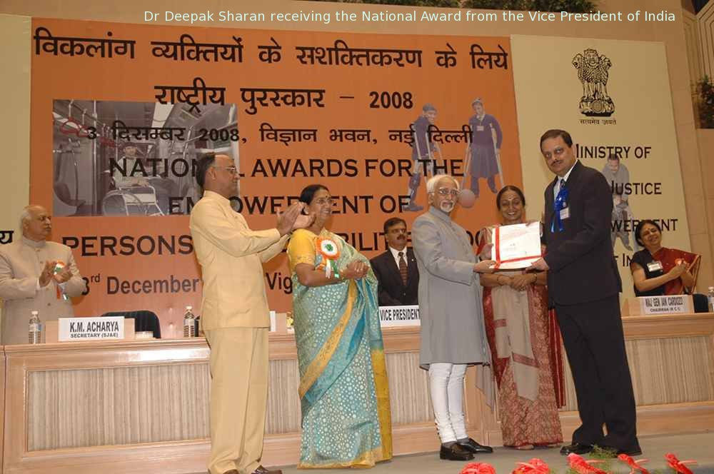 Dr. Deepak Sharan, Bengaluru. National Award 2008 for the Best Individual working for the Empowerment of Persons with Disabilities.