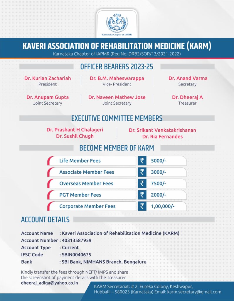 As a budding society, we strongly encourage doctors to enrol and participate in research, education and healthcare planning for the betterment of rehabilitation services in Karnataka.